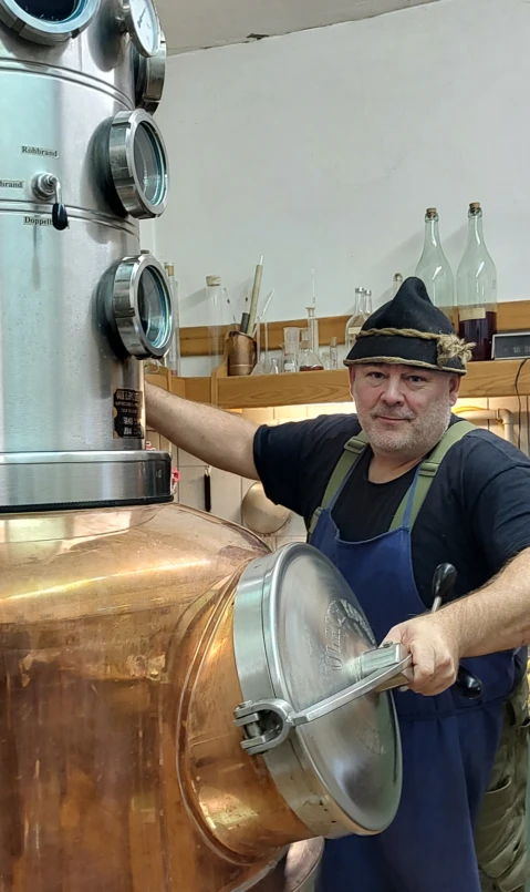 Ich selbst verbrachte schon als kleiner Junge sehr viel Zeit bei meiner Großmutter in der Brennerei und so wurde mir das Schnapsbrennen mit in die Wiege gelegt. Meinen ersten "Brand" machte ich selbstständig mit etwa 12 Jahren.