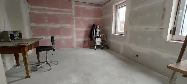 Estrich ist am trocken und Trockenbau nahezu abgeschlossen.